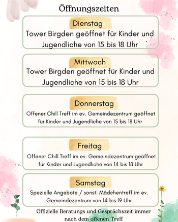 siehe Flyer, die Öffnungszeiten gelten aktuell!
